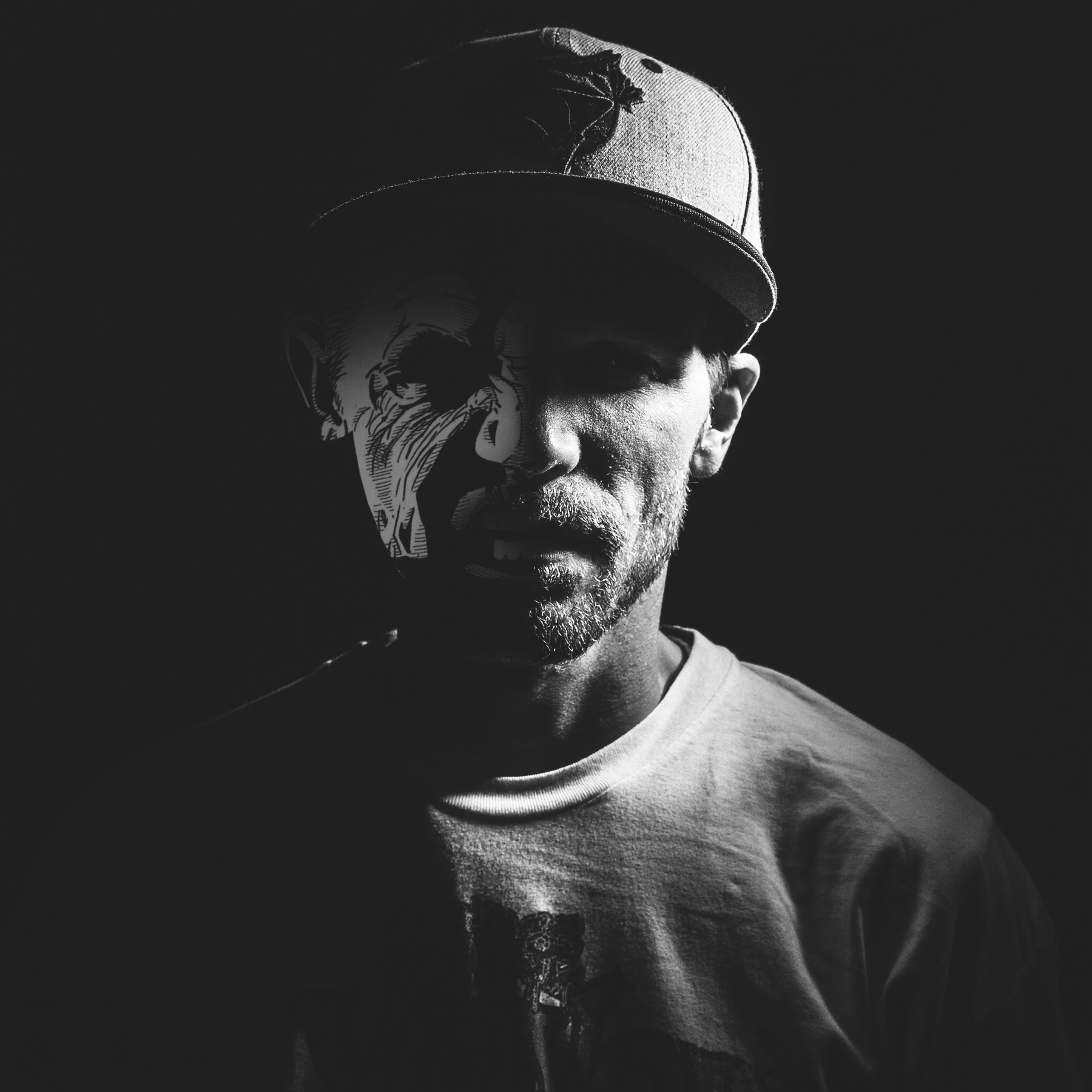 When the songs were all completed, MadHattr and myself did the mixing and sent the mixes to Notion to be mastered. During the wait, it was time for the album art to get done. I had a vision for how and what I wanted it to look like, but there isn’t many out there that could capture it so perfectly. I hit up Justin Main of Photified to do the work. When we got together for the photoshoot, I explained my vision. Being a big fan of Frank Miller’s work in comics I remembered scenes from the SinCity comics, one in particular I thought would be perfect for the cover. We discussed visuals and I showed him the cover I was hoping to emulate. With Justin there’s no maybe’s, anything is possible